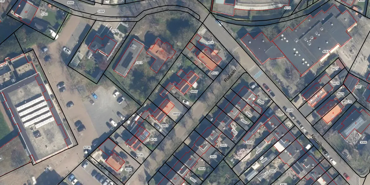 Het perceel waarop Rialaan 63 staat heeft een oppervlakte van 473 m². Dit is een groot perceel. De perceeloppervlakte wordt geregistreerd door het Kadaster. Gedetailleerde informatie over de maten van dit perceel kunt u vinden in het rapport Kadastrale kaart met maatvoering van Rialaan 63.