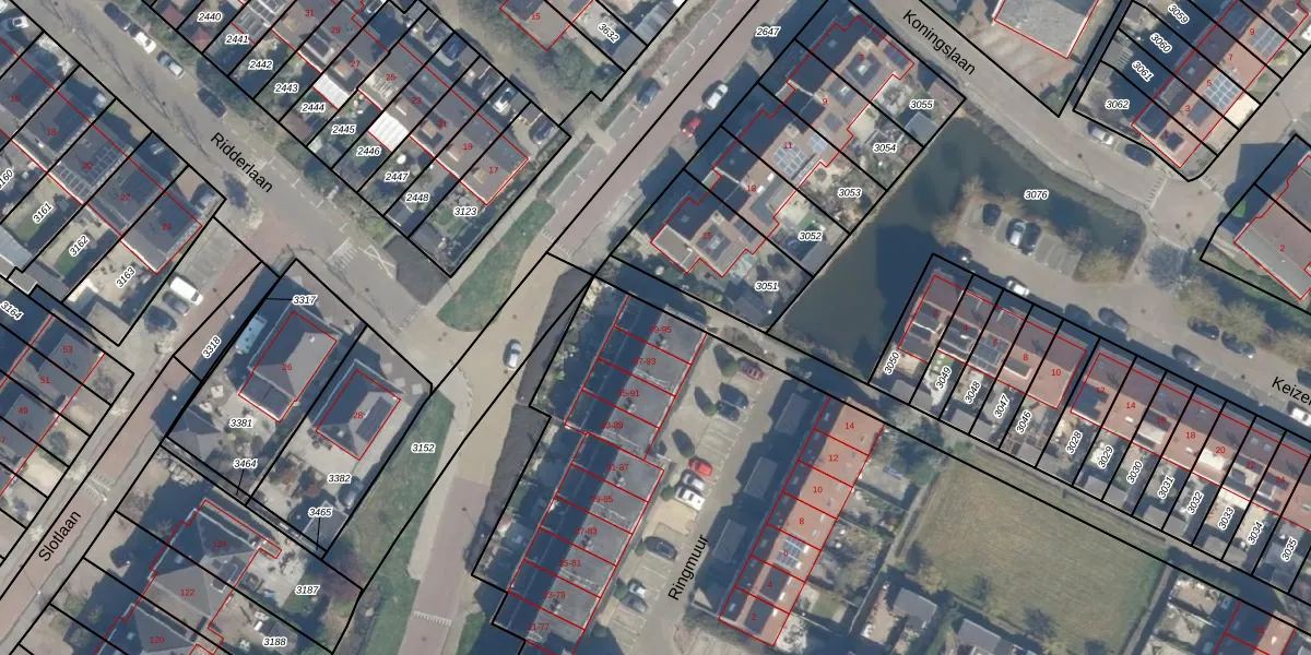 Het perceel waarop Ringmuur 95 staat heeft een oppervlakte van 1,3 ha. Dit is een zeer groot perceel. De perceeloppervlakte wordt geregistreerd door het Kadaster. Gedetailleerde informatie over de maten van dit perceel kunt u vinden in het rapport Kadastrale kaart met maatvoering van Ringmuur 95.