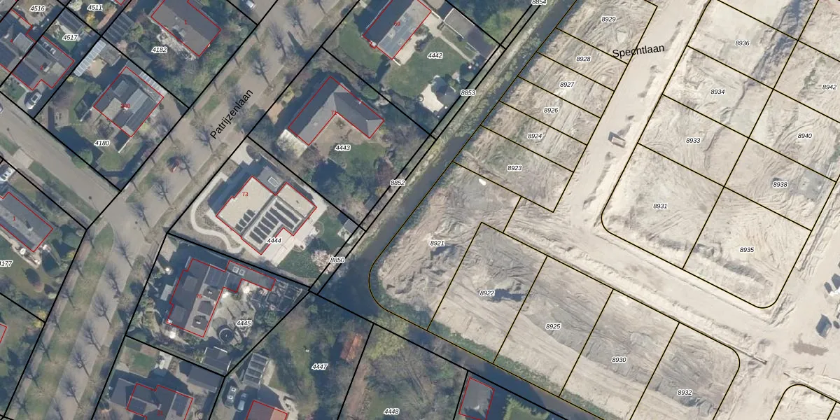 Het perceel waarop Spechtlaan 9 staat heeft een oppervlakte van 665 m². Dit is een groot perceel. De perceeloppervlakte wordt geregistreerd door het Kadaster. Gedetailleerde informatie over de maten van dit perceel kunt u vinden in het rapport Kadastrale kaart met maatvoering van Spechtlaan 9.