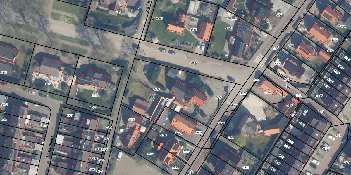 Het perceel waarop v d Meerweg 45 staat heeft een oppervlakte van 1550 m². Dit is een zeer groot perceel. De perceeloppervlakte wordt geregistreerd door het Kadaster. Gedetailleerde informatie over de maten van dit perceel kunt u vinden in het rapport Kadastrale kaart met maatvoering van v d Meerweg 45.