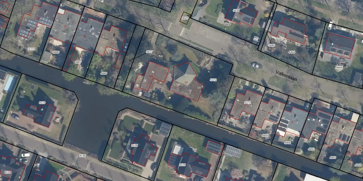 Valkenlaan 15 is gelegen op kadastraal perceel OVN00A5772. Deze kadastrale aanduiding is uniek en wordt gebruikt door het Kadaster om eigendomsrechten en andere zakelijke rechten vast te leggen. Het perceel maakt onderdeel uit van de kadastrale gemeente Oostvoorne.