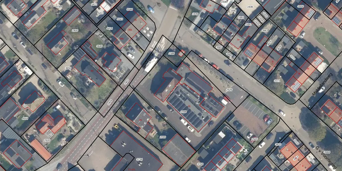 Voorweg 21 is gelegen op kadastraal perceel OVN00D2098. Deze kadastrale aanduiding is uniek en wordt gebruikt door het Kadaster om eigendomsrechten en andere zakelijke rechten vast te leggen. Het perceel maakt onderdeel uit van de kadastrale gemeente Oostvoorne.