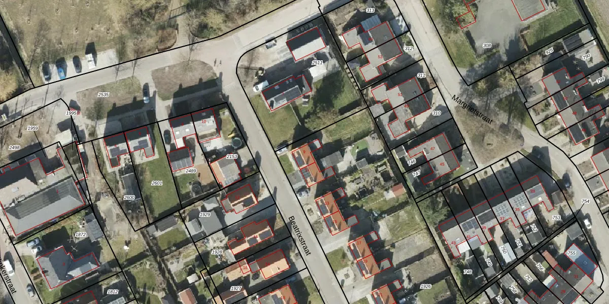 Het perceel waarop Beatrixstraat 9 staat heeft een oppervlakte van 4330 m². Dit is een zeer groot perceel. De perceeloppervlakte wordt geregistreerd door het Kadaster. Gedetailleerde informatie over de maten van dit perceel kunt u vinden in het rapport Kadastrale kaart met maatvoering van Beatrixstraat 9.