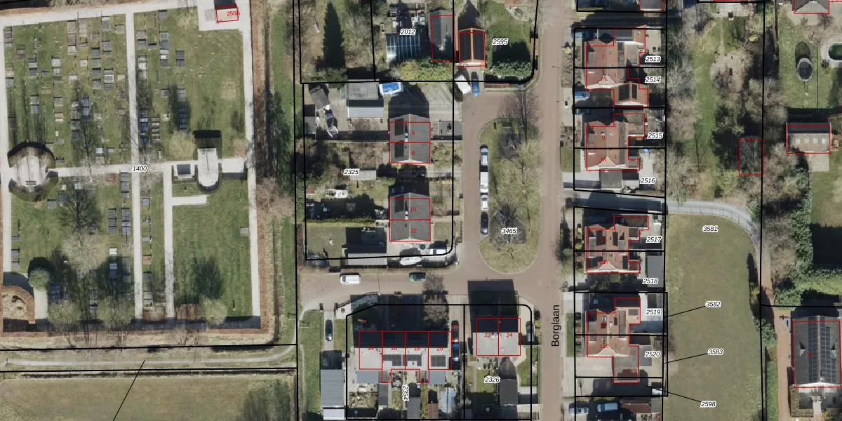 Borglaan 10 is gelegen op kadastraal perceel LEE01B2325. Deze kadastrale aanduiding is uniek en wordt gebruikt door het Kadaster om eigendomsrechten en andere zakelijke rechten vast te leggen. Het perceel maakt onderdeel uit van de kadastrale gemeente Leek.