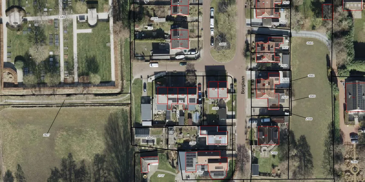 Borglaan 18 is gelegen op kadastraal perceel LEE01B2354. Deze kadastrale aanduiding is uniek en wordt gebruikt door het Kadaster om eigendomsrechten en andere zakelijke rechten vast te leggen. Het perceel maakt onderdeel uit van de kadastrale gemeente Leek.