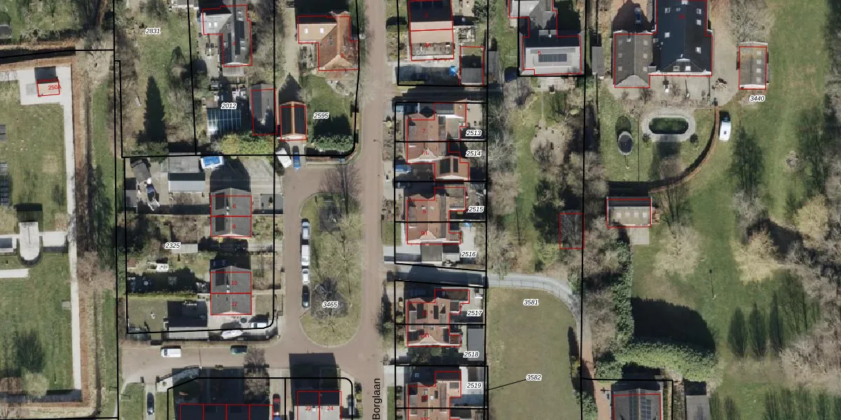 Borglaan 9 is gelegen op kadastraal perceel LEE01B2515. Deze kadastrale aanduiding is uniek en wordt gebruikt door het Kadaster om eigendomsrechten en andere zakelijke rechten vast te leggen. Het perceel maakt onderdeel uit van de kadastrale gemeente Leek.