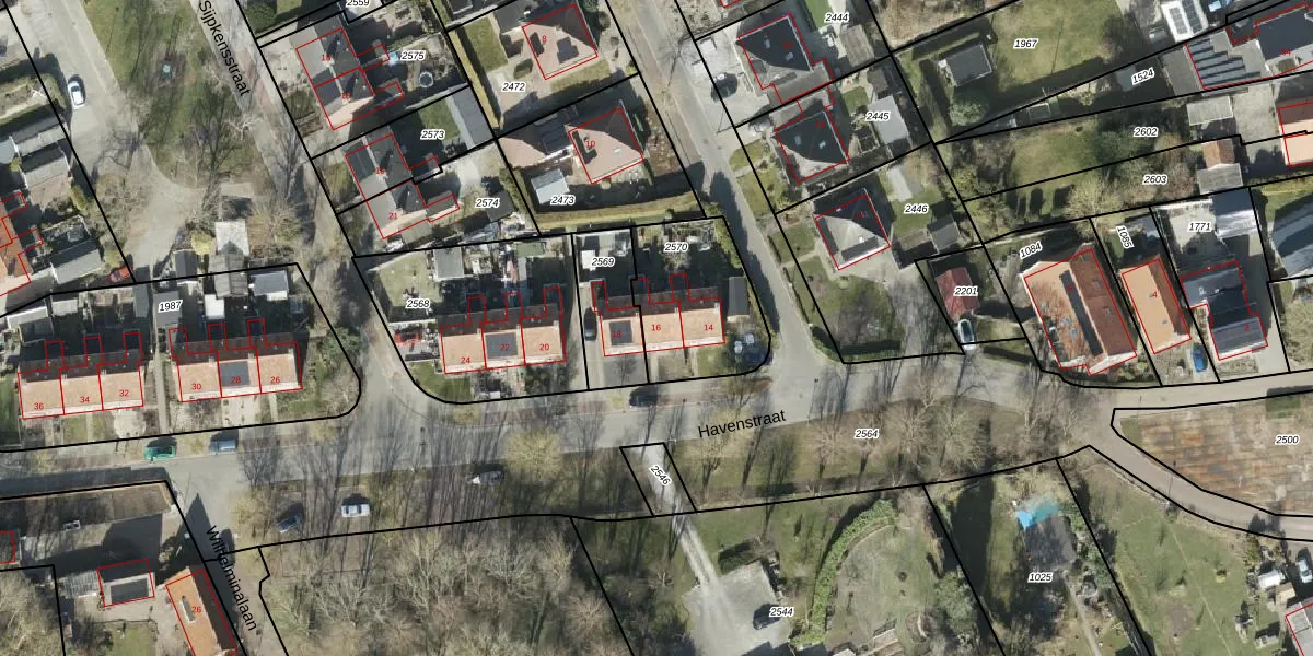 Havenstraat 16 is gelegen op kadastraal perceel MWD01B2570. Deze kadastrale aanduiding is uniek en wordt gebruikt door het Kadaster om eigendomsrechten en andere zakelijke rechten vast te leggen. Het perceel maakt onderdeel uit van de kadastrale gemeente Midwolda.