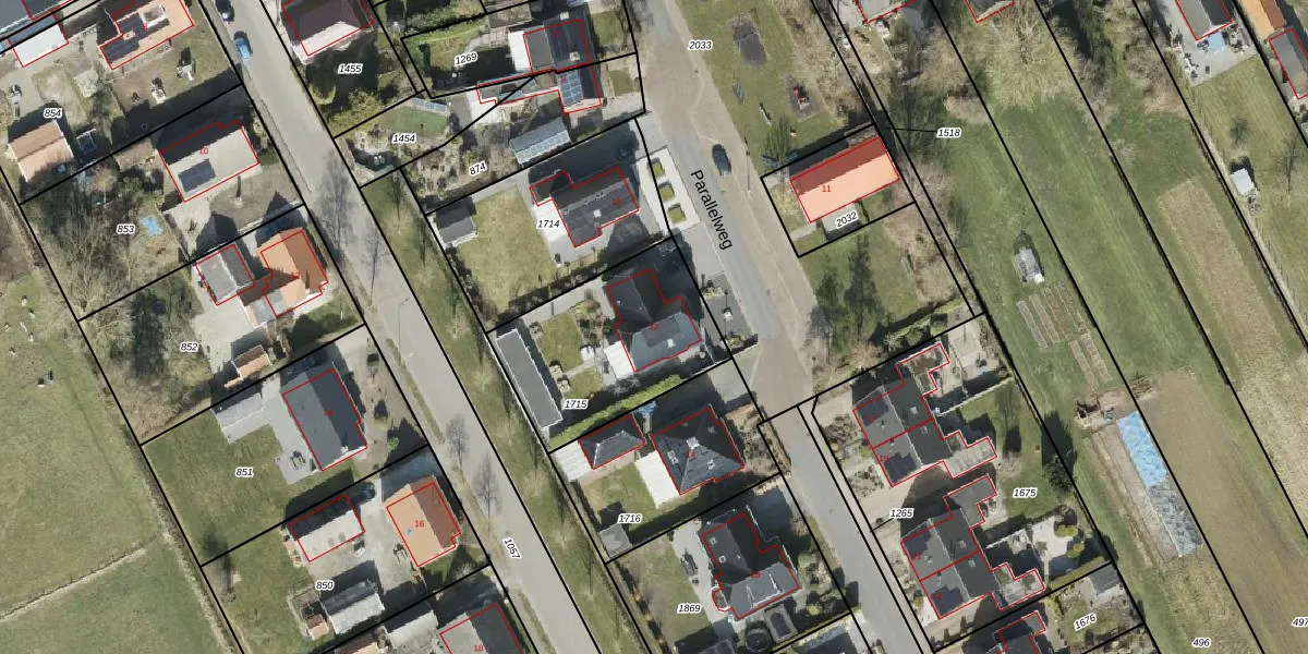 Parallelweg 12 is gelegen op kadastraal perceel MWD01M1715. Deze kadastrale aanduiding is uniek en wordt gebruikt door het Kadaster om eigendomsrechten en andere zakelijke rechten vast te leggen. Het perceel maakt onderdeel uit van de kadastrale gemeente Midwolda.