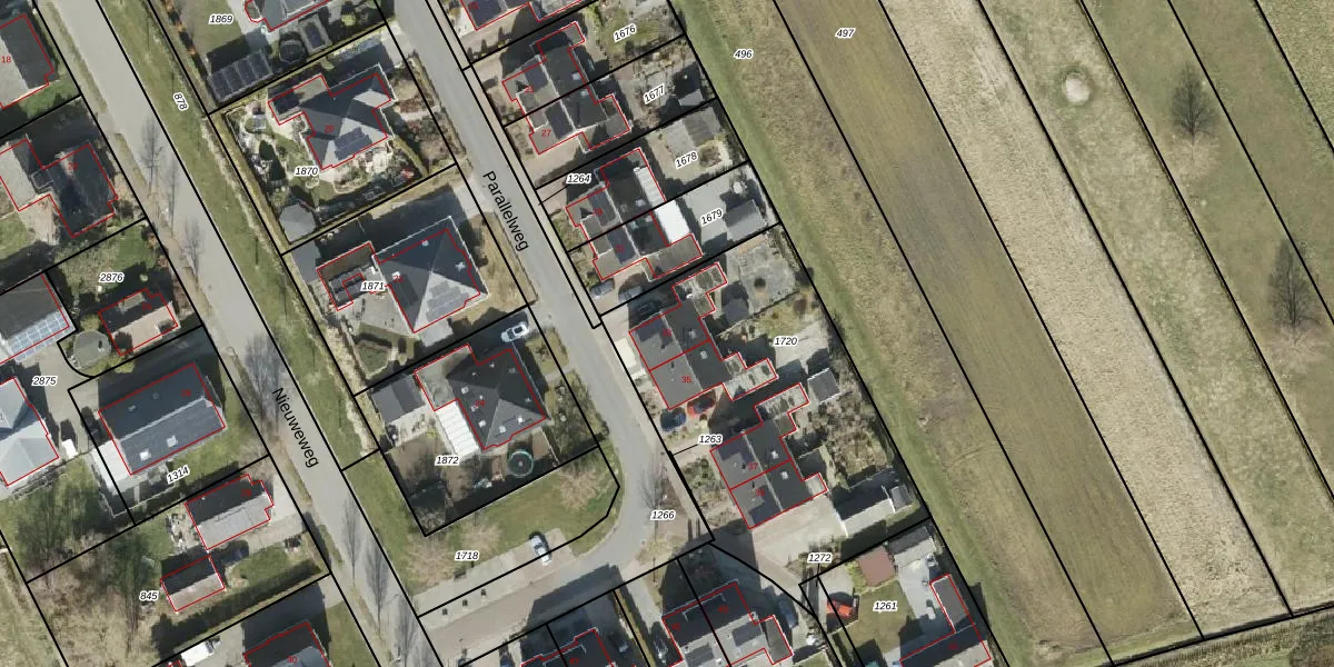 Parallelweg 33 is gelegen op kadastraal perceel MWD01M1720. Deze kadastrale aanduiding is uniek en wordt gebruikt door het Kadaster om eigendomsrechten en andere zakelijke rechten vast te leggen. Het perceel maakt onderdeel uit van de kadastrale gemeente Midwolda.