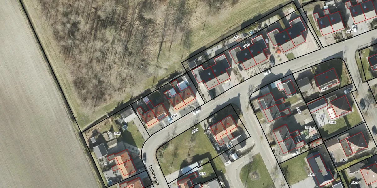 Het perceel waarop Tichelwerk 37 staat heeft een oppervlakte van 667 m². Dit is een groot perceel. De perceeloppervlakte wordt geregistreerd door het Kadaster. Gedetailleerde informatie over de maten van dit perceel kunt u vinden in het rapport Kadastrale kaart met maatvoering van Tichelwerk 37.