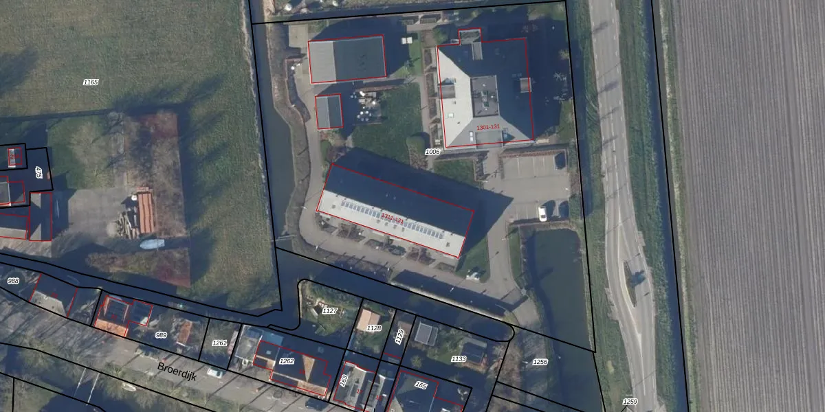 Broerdijk 1313 is gelegen op kadastraal perceel KGL01N1006. Deze kadastrale aanduiding is uniek en wordt gebruikt door het Kadaster om eigendomsrechten en andere zakelijke rechten vast te leggen. Het perceel maakt onderdeel uit van de kadastrale gemeente Noorder-Koggenland.