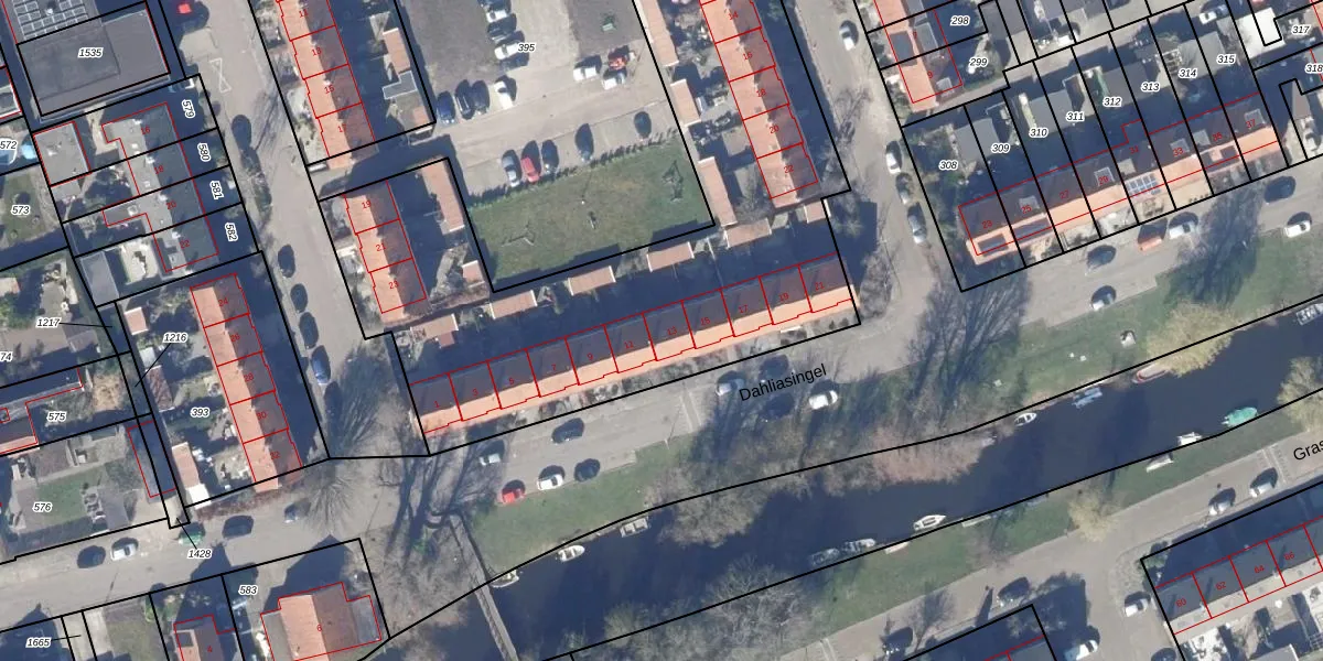 Het perceel waarop Dahliasingel 13 staat heeft een oppervlakte van 5630 m². Dit is een zeer groot perceel. De perceeloppervlakte wordt geregistreerd door het Kadaster. Gedetailleerde informatie over de maten van dit perceel kunt u vinden in het rapport Kadastrale kaart met maatvoering van Dahliasingel 13.