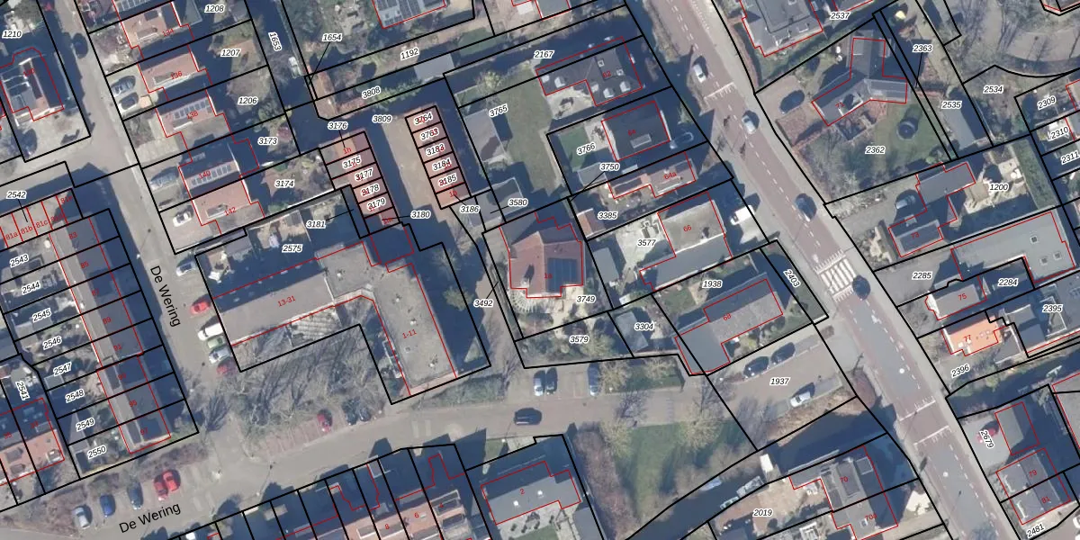 Het perceel waarop De Wering 1-a staat heeft een oppervlakte van 381 m². Dit is een groot perceel. De perceeloppervlakte wordt geregistreerd door het Kadaster. Gedetailleerde informatie over de maten van dit perceel kunt u vinden in het rapport Kadastrale kaart met maatvoering van De Wering 1-a.