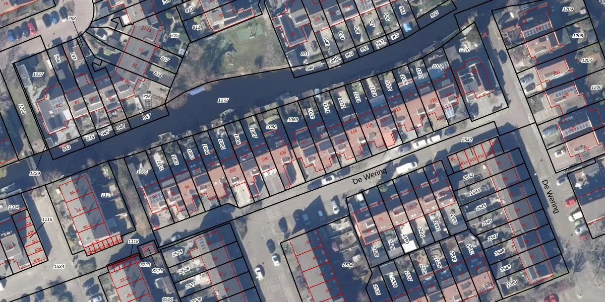 Het perceel waarop De Wering 110 staat heeft een oppervlakte van 199 m². Dit is een middelgroot perceel. De perceeloppervlakte wordt geregistreerd door het Kadaster. Gedetailleerde informatie over de maten van dit perceel kunt u vinden in het rapport Kadastrale kaart met maatvoering van De Wering 110.