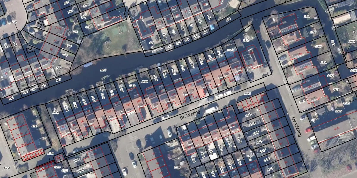 Het perceel waarop De Wering 116 staat heeft een oppervlakte van 136 m². Dit is een middelgroot perceel. De perceeloppervlakte wordt geregistreerd door het Kadaster. Gedetailleerde informatie over de maten van dit perceel kunt u vinden in het rapport Kadastrale kaart met maatvoering van De Wering 116.