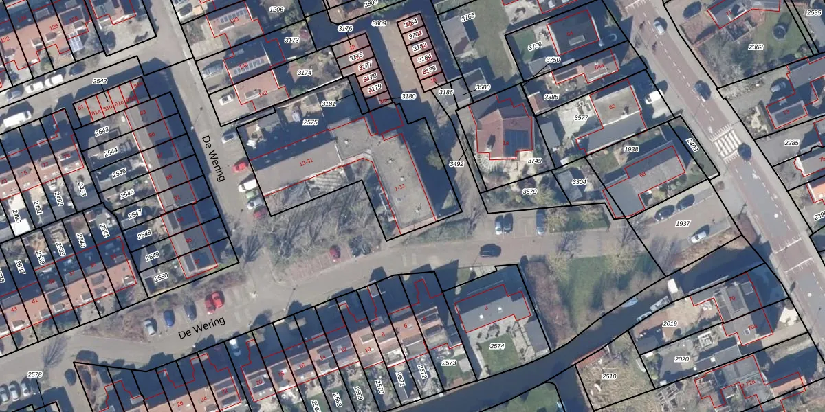 Het perceel waarop De Wering 9 staat heeft een oppervlakte van 1210 m². Dit is een zeer groot perceel. De perceeloppervlakte wordt geregistreerd door het Kadaster. Gedetailleerde informatie over de maten van dit perceel kunt u vinden in het rapport Kadastrale kaart met maatvoering van De Wering 9.
