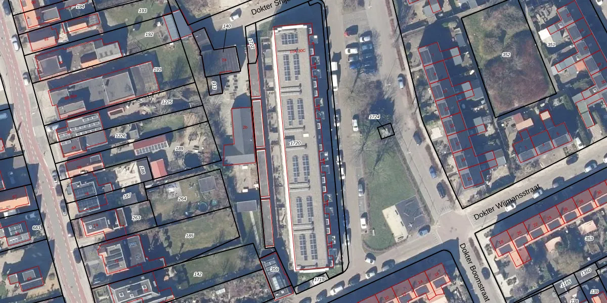 Het perceel waarop Dokter Boomstraat 20-B staat heeft een oppervlakte van 2137 m². Dit is een zeer groot perceel. De perceeloppervlakte wordt geregistreerd door het Kadaster. Gedetailleerde informatie over de maten van dit perceel kunt u vinden in het rapport Kadastrale kaart met maatvoering van Dokter Boomstraat 20-B.