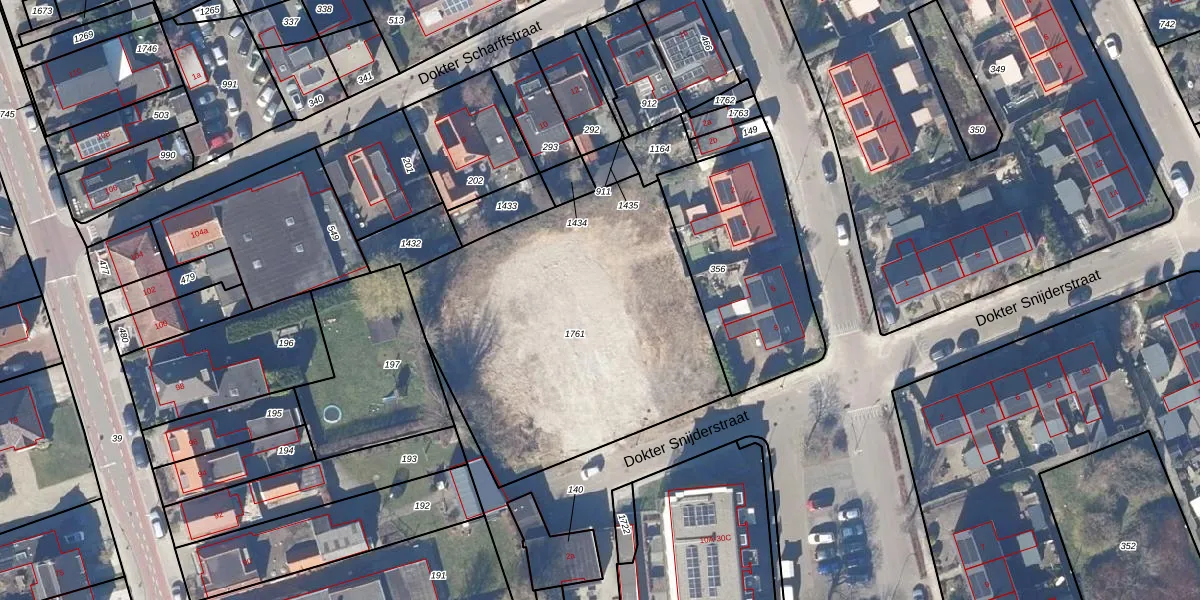 Het perceel waarop Dokter Snijderstraat 23 staat heeft een oppervlakte van 1750 m². Dit is een zeer groot perceel. De perceeloppervlakte wordt geregistreerd door het Kadaster. Gedetailleerde informatie over de maten van dit perceel kunt u vinden in het rapport Kadastrale kaart met maatvoering van Dokter Snijderstraat 23.