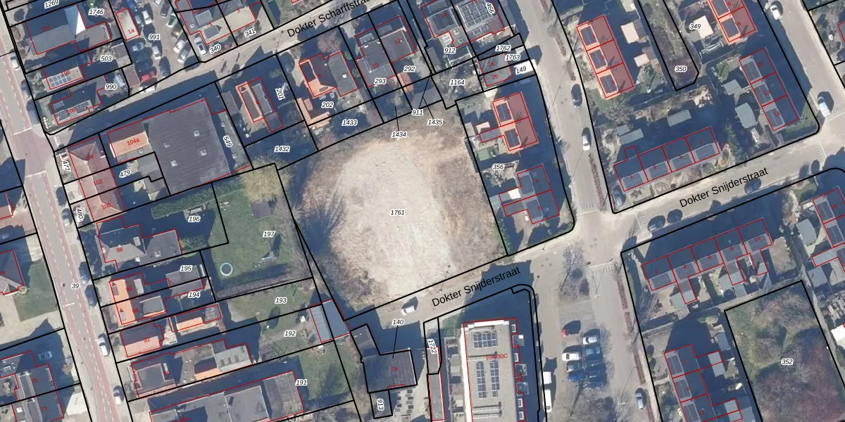 Het perceel waarop Dokter Snijderstraat 25 staat heeft een oppervlakte van 1750 m². Dit is een zeer groot perceel. De perceeloppervlakte wordt geregistreerd door het Kadaster. Gedetailleerde informatie over de maten van dit perceel kunt u vinden in het rapport Kadastrale kaart met maatvoering van Dokter Snijderstraat 25.