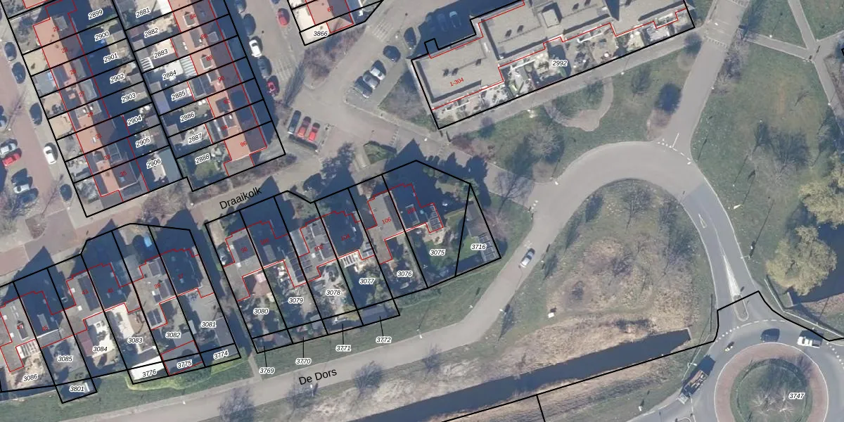 Het perceel waarop Draaikolk 108 staat heeft een oppervlakte van 379 m². Dit is een groot perceel. De perceeloppervlakte wordt geregistreerd door het Kadaster. Gedetailleerde informatie over de maten van dit perceel kunt u vinden in het rapport Kadastrale kaart met maatvoering van Draaikolk 108.