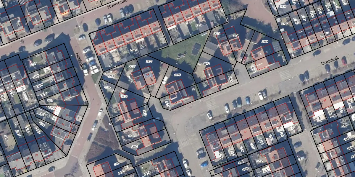 Gebruik de zoekbalk of klik op een perceel voor informatie over de adressen binnen dit perceel.