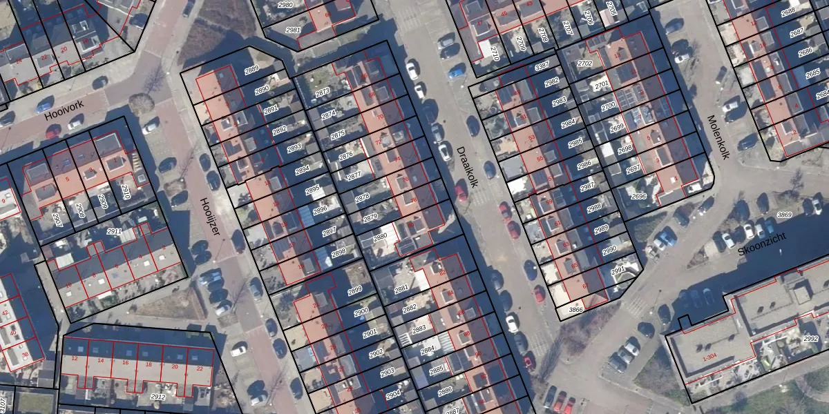Gebruik de zoekbalk of klik op een perceel voor informatie over de adressen binnen dit perceel.