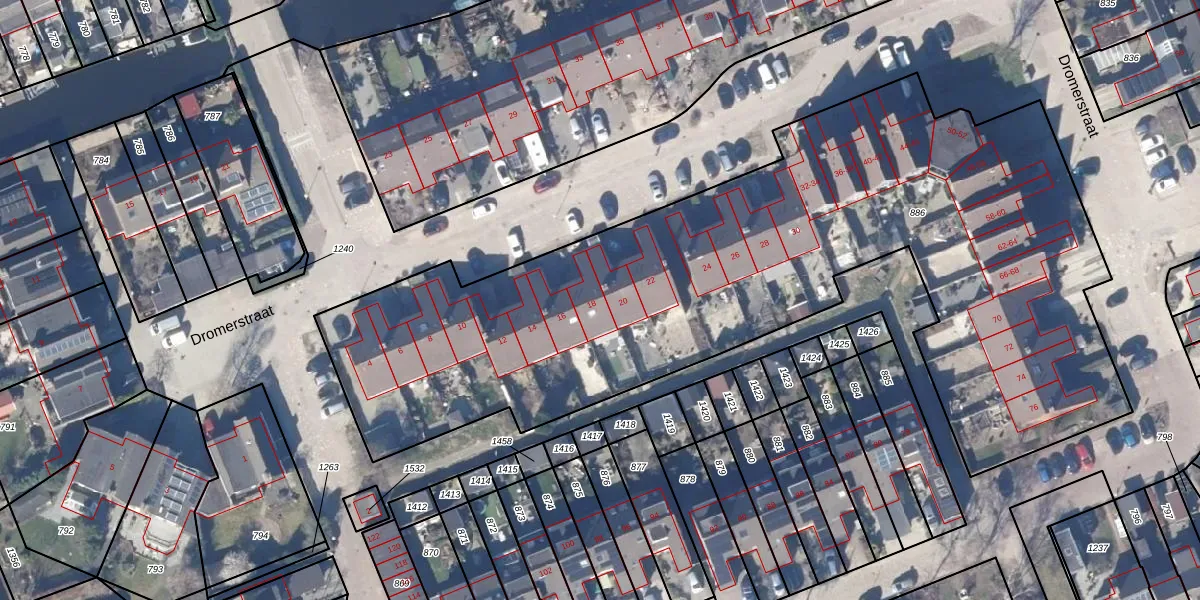 Dromerstraat 18 is gelegen op kadastraal perceel OZN00F886. Deze kadastrale aanduiding is uniek en wordt gebruikt door het Kadaster om eigendomsrechten en andere zakelijke rechten vast te leggen. Het perceel maakt onderdeel uit van de kadastrale gemeente Oostzaan.