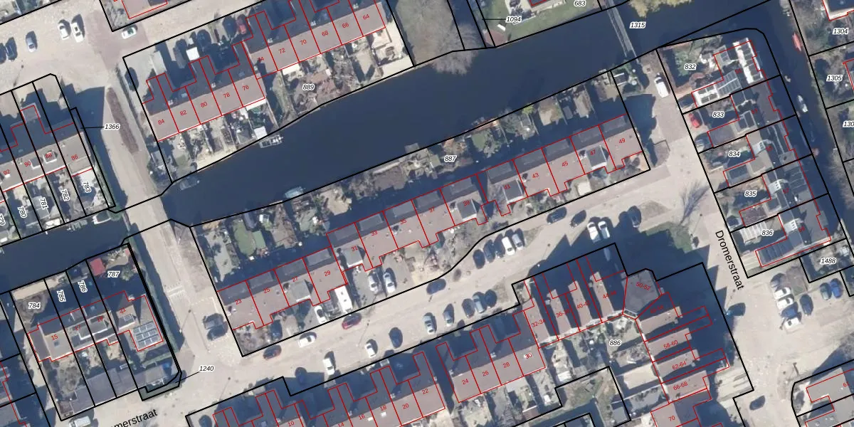 Het perceel waarop Dromerstraat 37 staat heeft een oppervlakte van 2924 m². Dit is een zeer groot perceel. De perceeloppervlakte wordt geregistreerd door het Kadaster. Gedetailleerde informatie over de maten van dit perceel kunt u vinden in het rapport Kadastrale kaart met maatvoering van Dromerstraat 37.