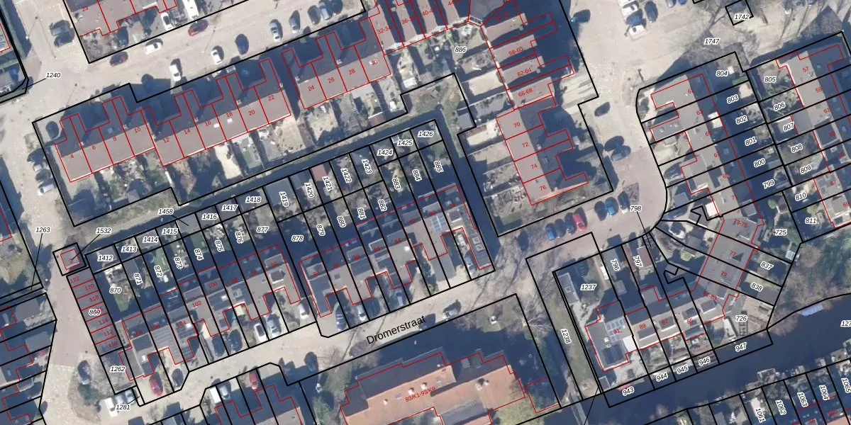 Het perceel waarop Dromerstraat 80 staat heeft een oppervlakte van 168 m². Dit is een middelgroot perceel. De perceeloppervlakte wordt geregistreerd door het Kadaster. Gedetailleerde informatie over de maten van dit perceel kunt u vinden in het rapport Kadastrale kaart met maatvoering van Dromerstraat 80.
