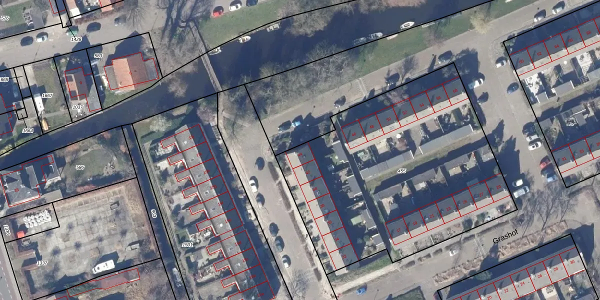 Grashof 44 is gelegen op kadastraal perceel OZN00F455. Deze kadastrale aanduiding is uniek en wordt gebruikt door het Kadaster om eigendomsrechten en andere zakelijke rechten vast te leggen. Het perceel maakt onderdeel uit van de kadastrale gemeente Oostzaan.