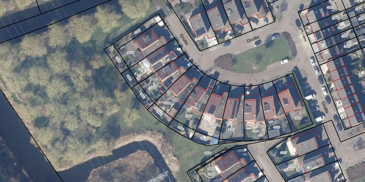 Het perceel waarop Grutto 19 staat heeft een oppervlakte van 322 m². Dit is een groot perceel. De perceeloppervlakte wordt geregistreerd door het Kadaster. Gedetailleerde informatie over de maten van dit perceel kunt u vinden in het rapport Kadastrale kaart met maatvoering van Grutto 19.