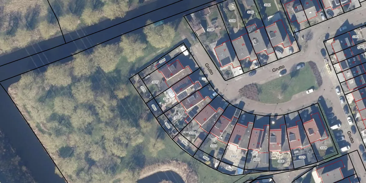 Grutto 23 is gelegen op kadastraal perceel OZN00C3336. Deze kadastrale aanduiding is uniek en wordt gebruikt door het Kadaster om eigendomsrechten en andere zakelijke rechten vast te leggen. Het perceel maakt onderdeel uit van de kadastrale gemeente Oostzaan.