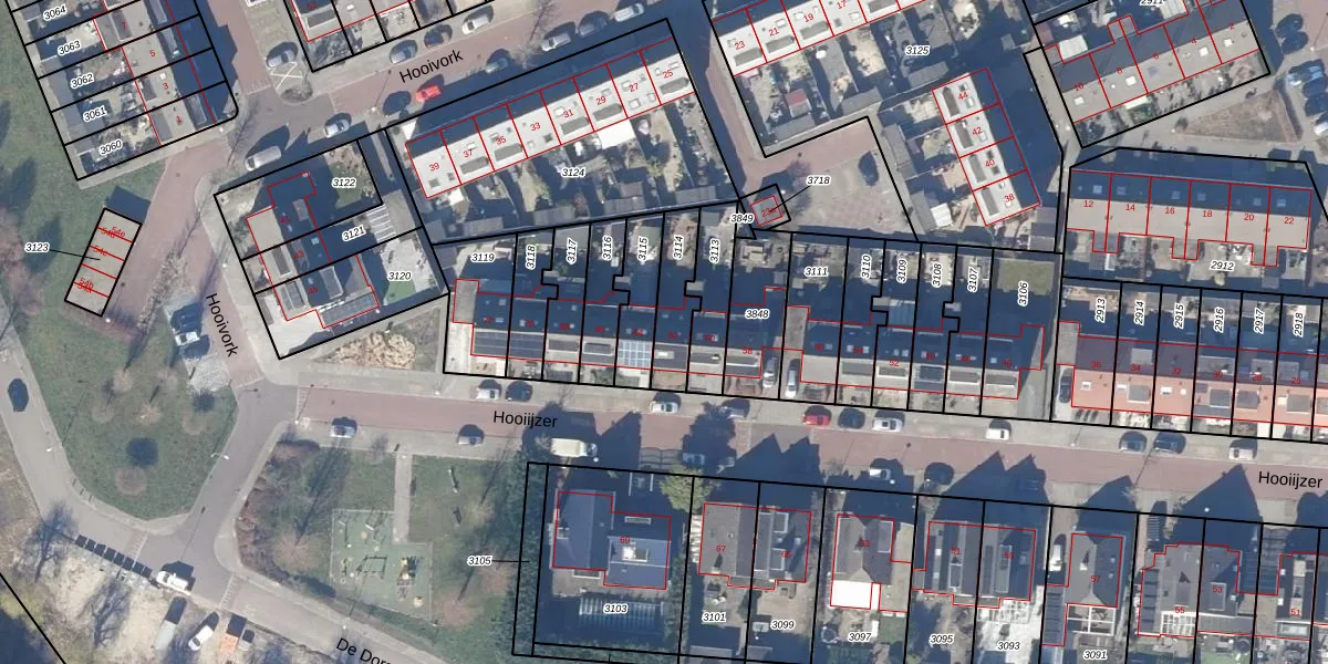 Het perceel waarop Hooiijzer 62 staat heeft een oppervlakte van 149 m². Dit is een middelgroot perceel. De perceeloppervlakte wordt geregistreerd door het Kadaster. Gedetailleerde informatie over de maten van dit perceel kunt u vinden in het rapport Kadastrale kaart met maatvoering van Hooiijzer 62.