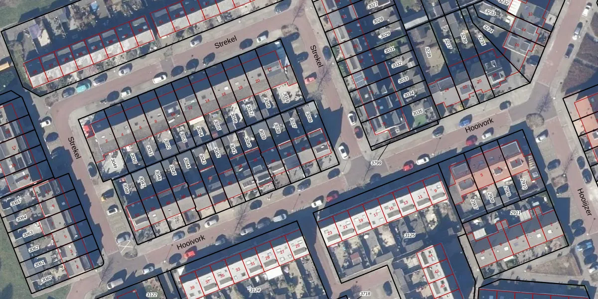 Gebruik de zoekbalk of klik op een perceel voor informatie over de adressen binnen dit perceel.