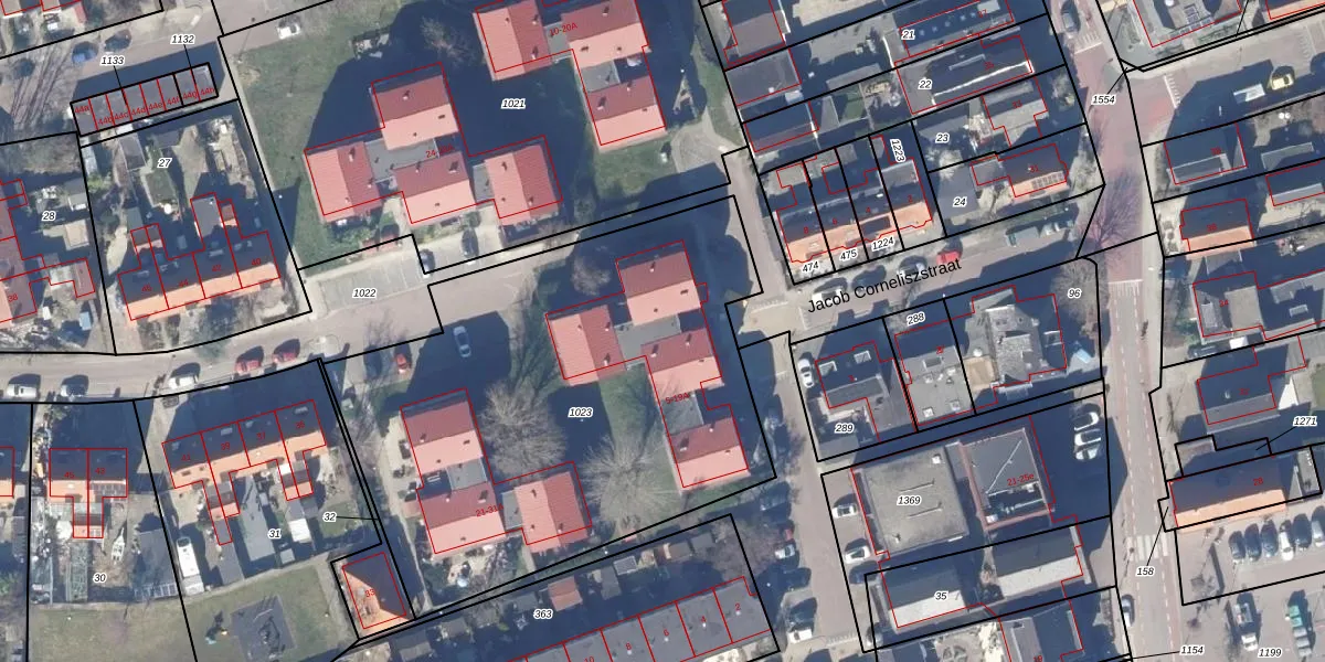 Het perceel waarop Jacob Corneliszstraat 13 staat heeft een oppervlakte van 2620 m². Dit is een zeer groot perceel. De perceeloppervlakte wordt geregistreerd door het Kadaster. Gedetailleerde informatie over de maten van dit perceel kunt u vinden in het rapport Kadastrale kaart met maatvoering van Jacob Corneliszstraat 13.