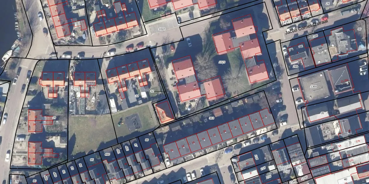 Jacob Corneliszstraat 23 is gelegen op kadastraal perceel OZN00F1023. Deze kadastrale aanduiding is uniek en wordt gebruikt door het Kadaster om eigendomsrechten en andere zakelijke rechten vast te leggen. Het perceel maakt onderdeel uit van de kadastrale gemeente Oostzaan.
