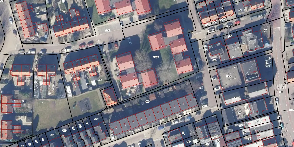 Het perceel waarop Jacob Corneliszstraat 31 staat heeft een oppervlakte van 2620 m². Dit is een zeer groot perceel. De perceeloppervlakte wordt geregistreerd door het Kadaster. Gedetailleerde informatie over de maten van dit perceel kunt u vinden in het rapport Kadastrale kaart met maatvoering van Jacob Corneliszstraat 31.