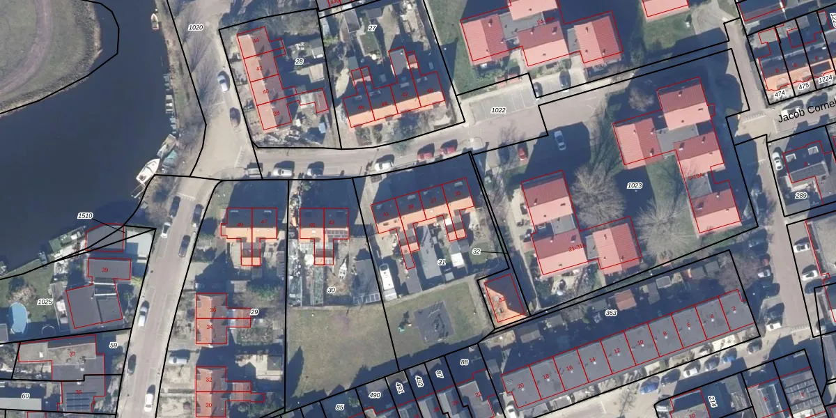 Jacob Corneliszstraat 39 is gelegen op kadastraal perceel OZN00F31. Deze kadastrale aanduiding is uniek en wordt gebruikt door het Kadaster om eigendomsrechten en andere zakelijke rechten vast te leggen. Het perceel maakt onderdeel uit van de kadastrale gemeente Oostzaan.