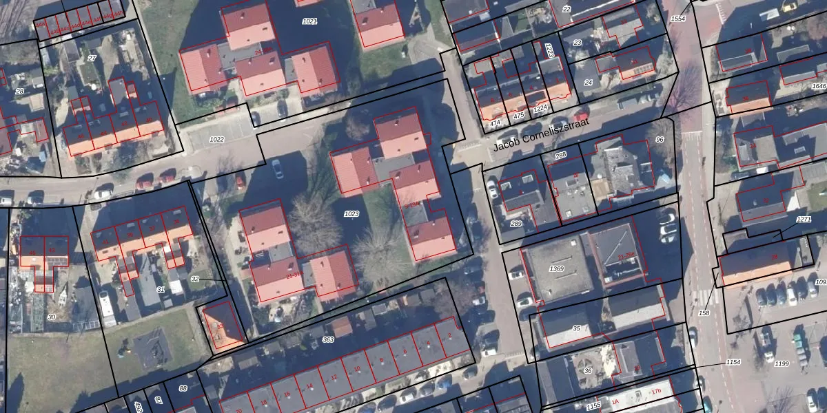 Het perceel waarop Jacob Corneliszstraat 5 staat heeft een oppervlakte van 2620 m². Dit is een zeer groot perceel. De perceeloppervlakte wordt geregistreerd door het Kadaster. Gedetailleerde informatie over de maten van dit perceel kunt u vinden in het rapport Kadastrale kaart met maatvoering van Jacob Corneliszstraat 5.