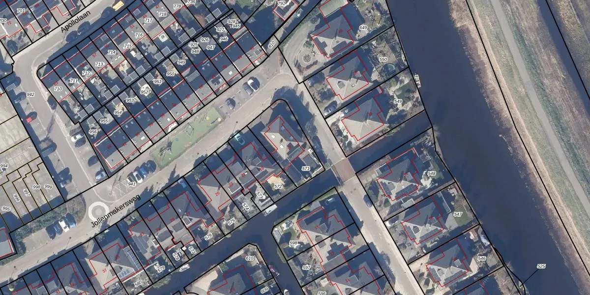 Het perceel waarop Jollenmakersweg 17 staat heeft een oppervlakte van 376 m². Dit is een groot perceel. De perceeloppervlakte wordt geregistreerd door het Kadaster. Gedetailleerde informatie over de maten van dit perceel kunt u vinden in het rapport Kadastrale kaart met maatvoering van Jollenmakersweg 17.