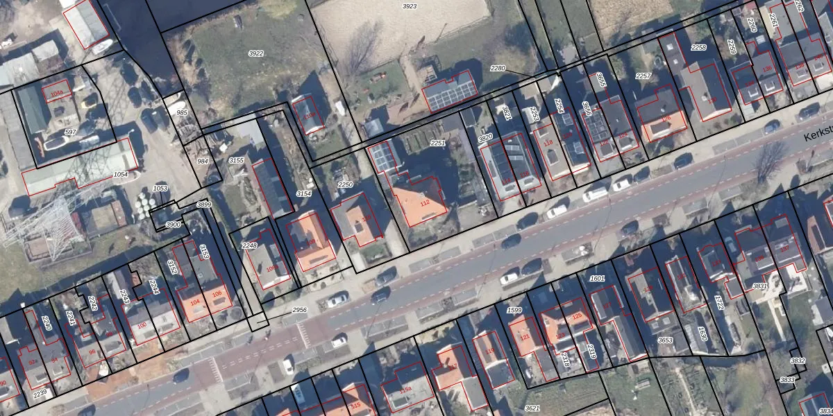 Het perceel waarop Kerkstraat 112 staat heeft een oppervlakte van 651 m². Dit is een groot perceel. De perceeloppervlakte wordt geregistreerd door het Kadaster. Gedetailleerde informatie over de maten van dit perceel kunt u vinden in het rapport Kadastrale kaart met maatvoering van Kerkstraat 112.