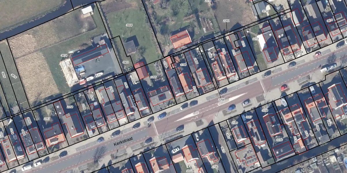 Gebruik de zoekbalk of klik op een perceel voor informatie over de adressen binnen dit perceel.