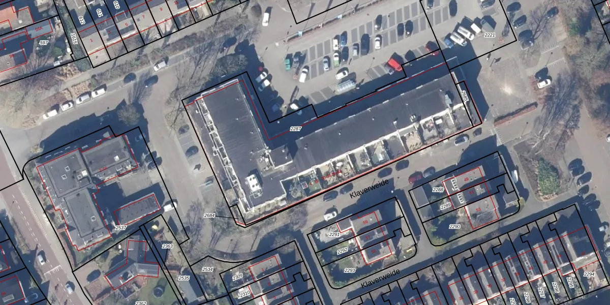 Het perceel waarop Klaverweide 34 staat heeft een oppervlakte van 2601 m². Dit is een zeer groot perceel. De perceeloppervlakte wordt geregistreerd door het Kadaster. Gedetailleerde informatie over de maten van dit perceel kunt u vinden in het rapport Kadastrale kaart met maatvoering van Klaverweide 34.