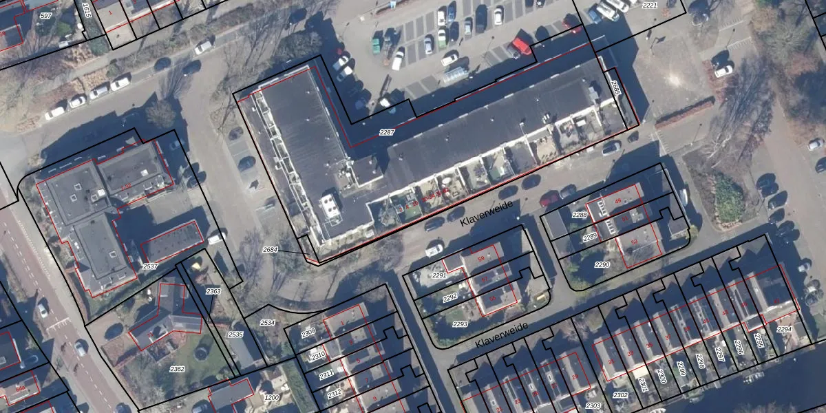 Het perceel waarop Klaverweide 42 staat heeft een oppervlakte van 2601 m². Dit is een zeer groot perceel. De perceeloppervlakte wordt geregistreerd door het Kadaster. Gedetailleerde informatie over de maten van dit perceel kunt u vinden in het rapport Kadastrale kaart met maatvoering van Klaverweide 42.