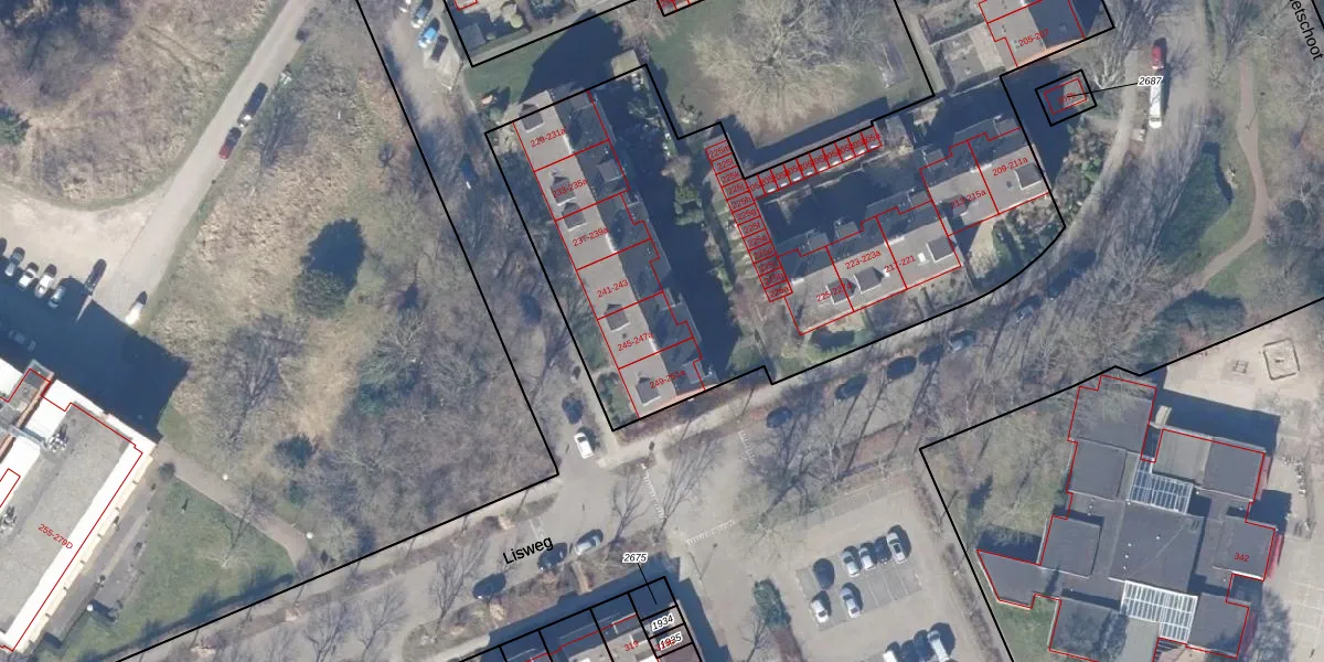 Het perceel waarop Lisweg 247-a staat heeft een oppervlakte van 6349 m². Dit is een zeer groot perceel. De perceeloppervlakte wordt geregistreerd door het Kadaster. Gedetailleerde informatie over de maten van dit perceel kunt u vinden in het rapport Kadastrale kaart met maatvoering van Lisweg 247-a.