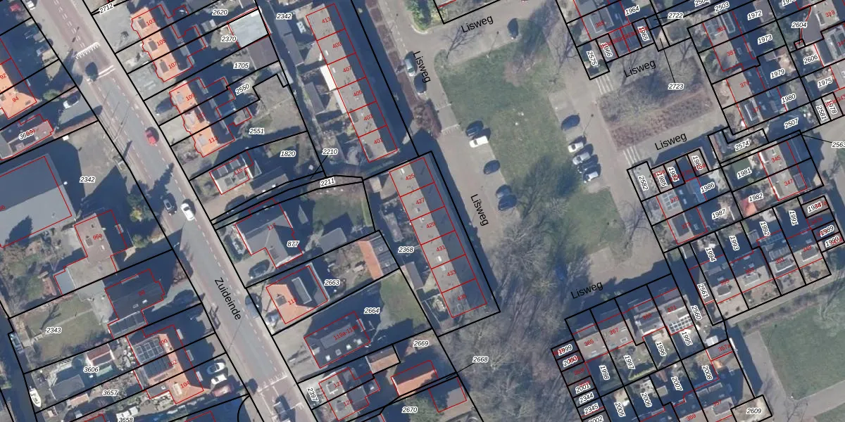 Lisweg 427 is gelegen op kadastraal perceel OZN00B2368. Deze kadastrale aanduiding is uniek en wordt gebruikt door het Kadaster om eigendomsrechten en andere zakelijke rechten vast te leggen. Het perceel maakt onderdeel uit van de kadastrale gemeente Oostzaan.