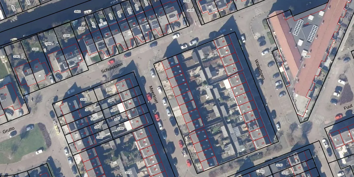 Het perceel waarop Meerkoet 40 staat heeft een oppervlakte van 3295 m². Dit is een zeer groot perceel. De perceeloppervlakte wordt geregistreerd door het Kadaster. Gedetailleerde informatie over de maten van dit perceel kunt u vinden in het rapport Kadastrale kaart met maatvoering van Meerkoet 40.