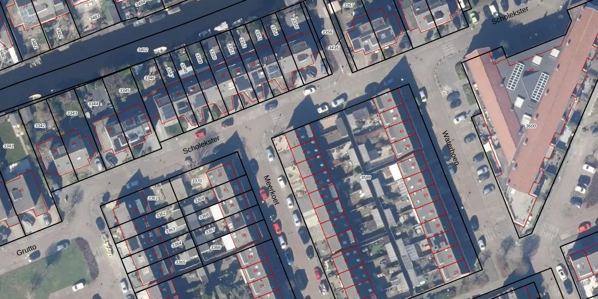 Het perceel waarop Meerkoet 44 staat heeft een oppervlakte van 3295 m². Dit is een zeer groot perceel. De perceeloppervlakte wordt geregistreerd door het Kadaster. Gedetailleerde informatie over de maten van dit perceel kunt u vinden in het rapport Kadastrale kaart met maatvoering van Meerkoet 44.