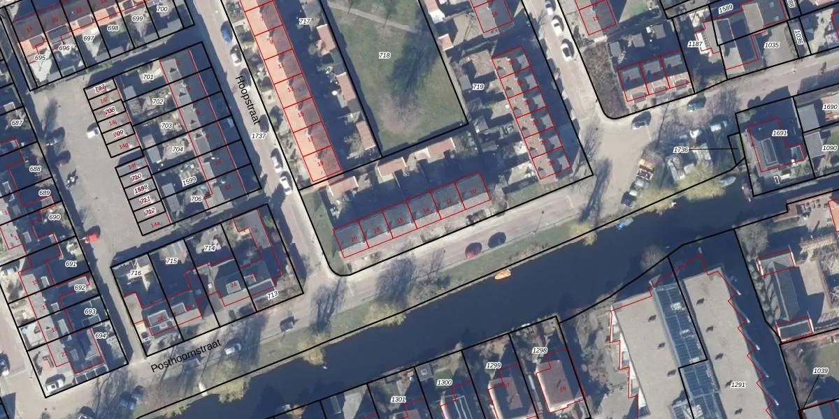 Posthoornstraat 14 is gelegen op kadastraal perceel OZN00F719. Deze kadastrale aanduiding is uniek en wordt gebruikt door het Kadaster om eigendomsrechten en andere zakelijke rechten vast te leggen. Het perceel maakt onderdeel uit van de kadastrale gemeente Oostzaan.
