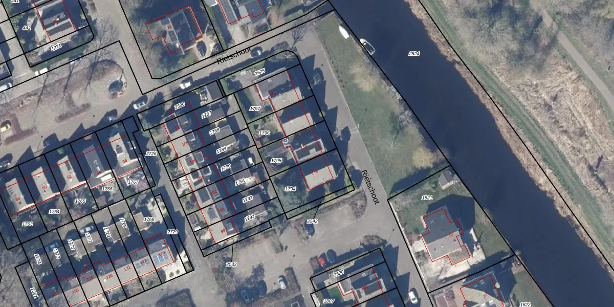 Het perceel waarop Rietschoot 116 staat heeft een oppervlakte van 221 m². Dit is een middelgroot perceel. De perceeloppervlakte wordt geregistreerd door het Kadaster. Gedetailleerde informatie over de maten van dit perceel kunt u vinden in het rapport Kadastrale kaart met maatvoering van Rietschoot 116.